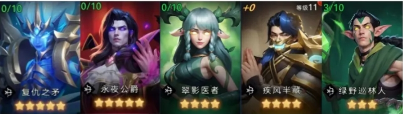 复仇之矛、永夜公爵、古墓泰坦、林间仙子、天野战神