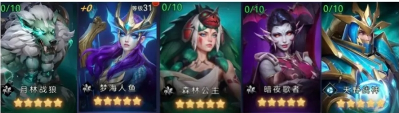 月林战狼、梦海人鱼、森林公主、暗夜歌者、天野战神