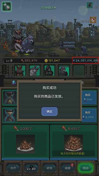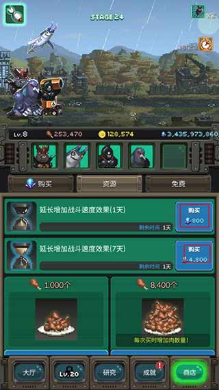 4、随着游戏难度越来越高,点击研究还能对怪兽进行升级;