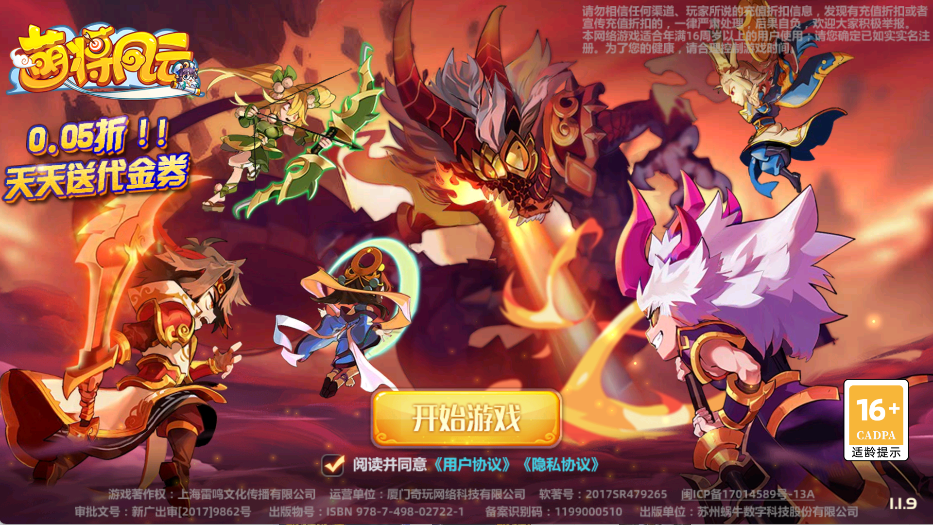 萌将风云(0.05升级送哪吒)是一款精心雕琢的新概念微操卡牌手游。以古代三国为背景融入西游记等中国神话,使人、神、魔汇聚一堂!知名CV携手爆笑剧情;强烈打击感搭配上百种微操技能,让你感受耳目一新的策略战斗!更有MM后援团、国战、世界资源争夺等特色玩法,满足一切期待!面对未知的冒险与挑战,你准备好了吗?