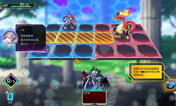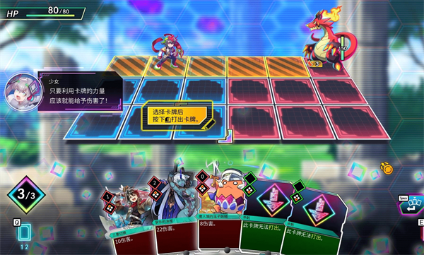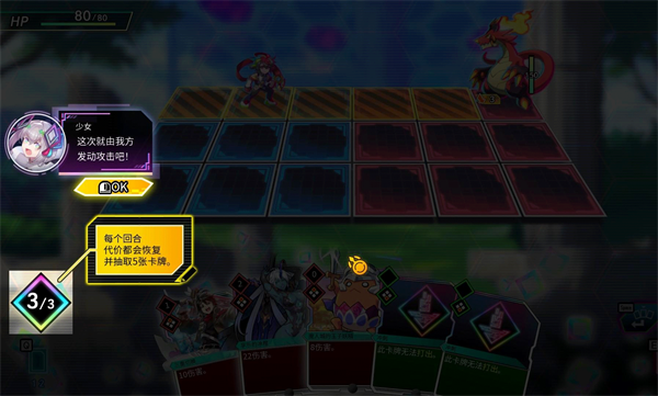 6、点击右键打出卡牌,会消耗行动点数并触发攻击效果,这是基本的进攻手段。