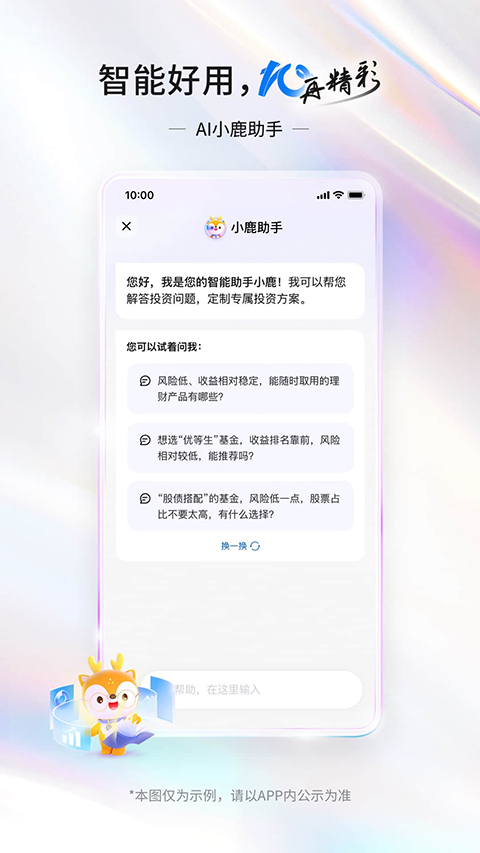 1、AI小鹿助手:您身边的智能财富管家,开口即理财,为您解读信息、精准产品筛选、一句话定制专属方案。