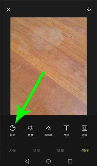2、接着点击“贴纸”。