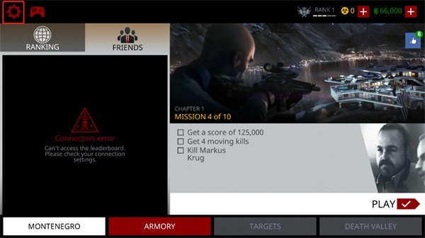 1、双击打开代号47狙击游戏,点击左上角的齿轮按钮;