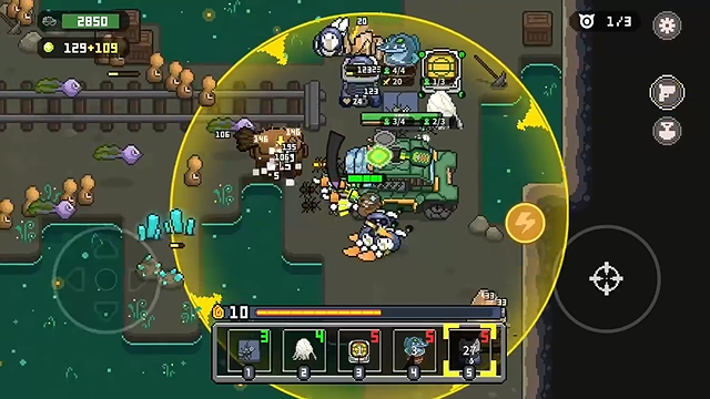3、挑战BOSS时,尤其是面对高爆发类型的敌人,一定要提前布好“能量护盾”等防御技能,并搭配大范围控制进行削弱。此外,让鸡械队伍分散站位能够有效降低集体被秒杀的风险,大幅提升容错率。