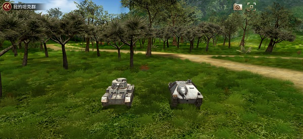 玩家可以在个人资料界面点击查看坦克群进入到坦克群展示场景界面,也可以在查看他人个人资料界面查看其他玩家坦克群。玩家不仅可以看看别人的坦克群是否比自己的坦克群霸气,还可以来推算对方的综合实力,判断约战的依据。同时,展示坦克群也能满足玩家们的成就感和优越感。