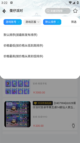 3、选择好游戏的区服,还可以选择价格的排序
