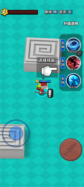 5、技能升级时可从旋风斩、猛冲等主动技能中进行选择,技能选定后可进一步强化战斗能力,大幅提升击杀效率。