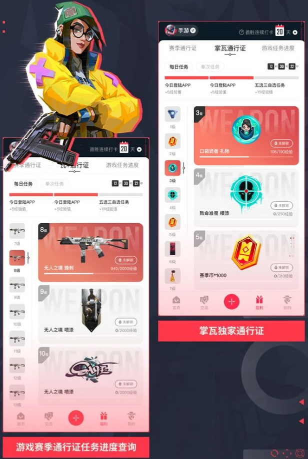 支持查询游戏赛季通行证/每周/每日任务进度,上线掌瓦独家通行证