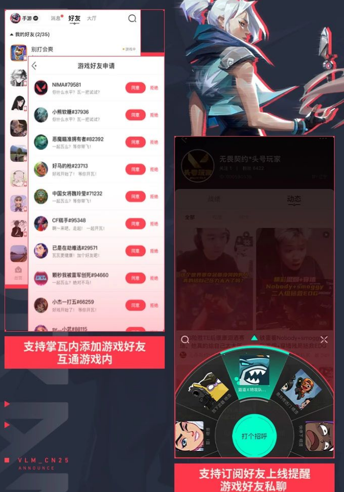 支持掌瓦内添加游戏好友,互通游戏内,支持订阅好友上线提醒、游戏好友私聊