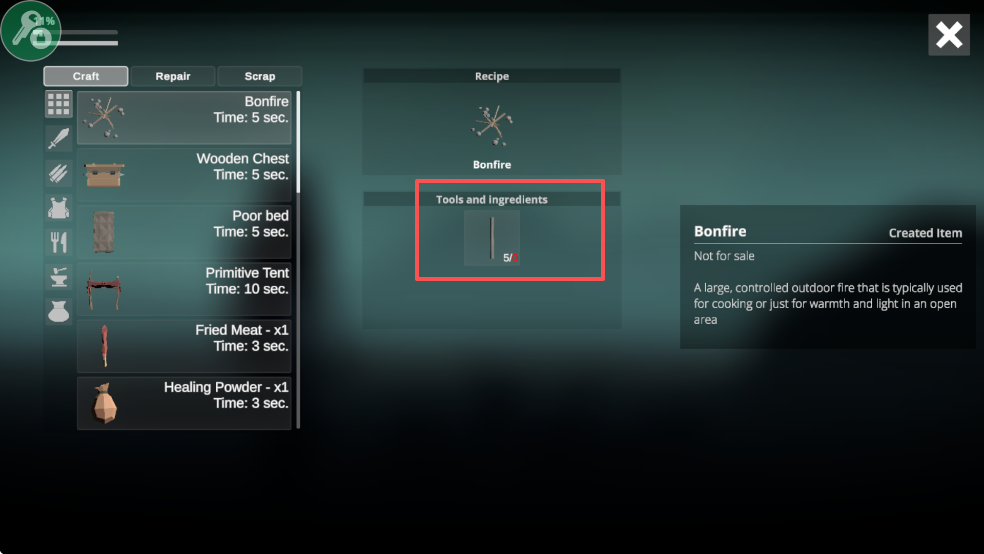 4、你将探索这个荒芜的世界,寻找食物,制作称手的工具