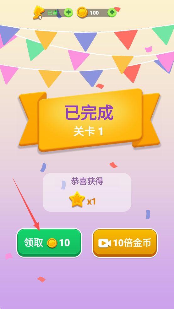 4、通关之后可以解锁下一关卡,还可以获得金币奖励
