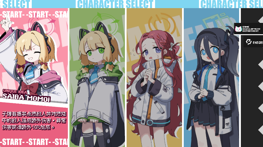 游戏开场由玩家在多个碧蓝档案角色中挑选,每名角色拥有不同技能与属性设定,战斗方式亦各具特色。同时需搭配初始武器,武器种类繁多,有的射速快,有的伤害高,组合得当能极大提升作战效率。