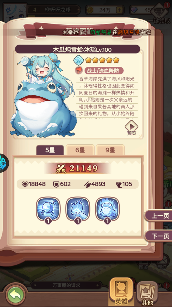 4、6元获得神话英雄【星凝】附赠气泡框和头像框