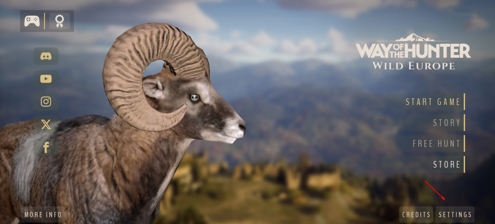1、进入猎人之路狂野欧洲游戏主界面后,点击右下角的【Settings】选项。