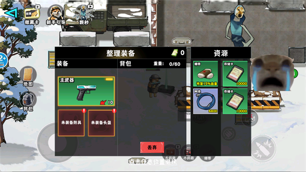 搜集到物资后打开背包整理装备,优先拾取高价值资源,丢弃无用物品以减轻负重。