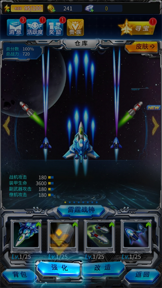 雷霆战机集结是一款星际科幻飞行射击手游,玩家将驾驶地球联邦尖端战机穿梭星际战场,阻止战争蔓延。游戏提供丰富的战机DIY系统,玩家可自由搭配装备应对不同战斗场景,还能集齐特定战机解锁拥有独特机制的"雷霆战神"机甲。