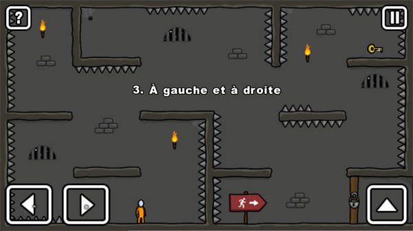 第3关「Àgaucheetàdroite」考验玩家的操作技巧,需要灵活运用左右移动键,在复杂的尖刺地形中精准穿梭,寻找正确的前进路线。
