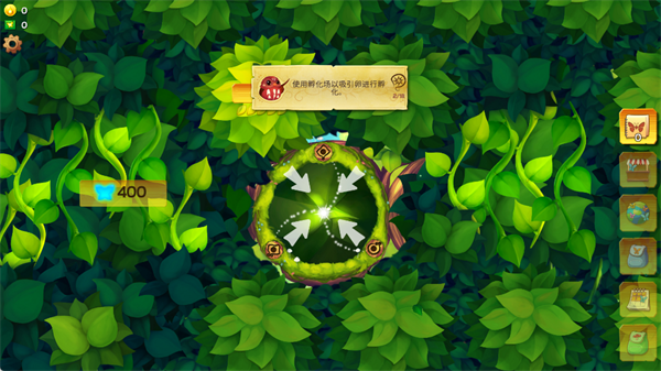 点击「冗叶」清理覆盖的树叶,扩大你的森林范围,以此发现新的召唤点和花朵,为后续吸引蝴蝶做准备。
