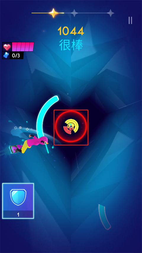 5、当玩家遇到带有颜色的光环就需要注意了,这是玩家需要击打的颜色会发生改变,击打的颜色就是光环的颜色;