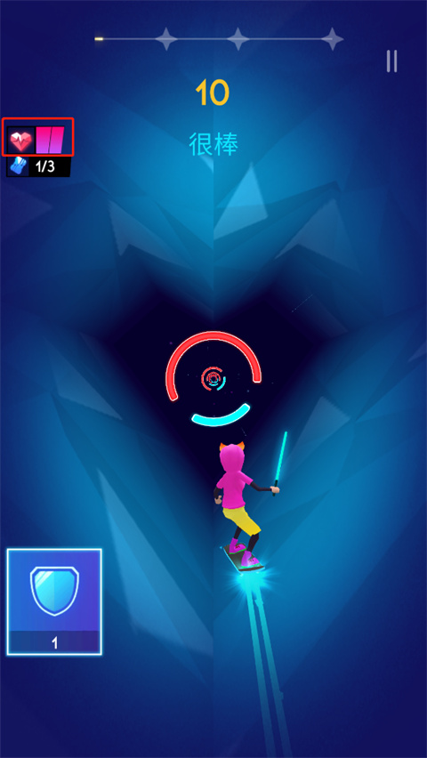 4、左上方的是血条,失误一次会消耗一格血条,血条见底游戏就会结束;