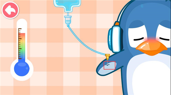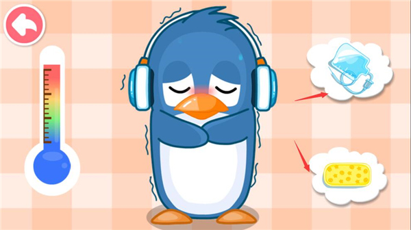 3、点击体温计给小动物量体温,发现体温高过;