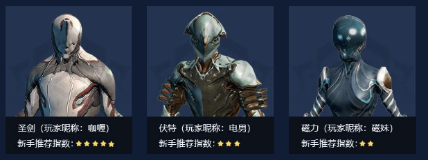 本推荐仅从“新手友好度”角度出发,并不代表战甲的最终强度高低,《星际战甲》中每一套战甲和武器都有其独特玩法与上限。