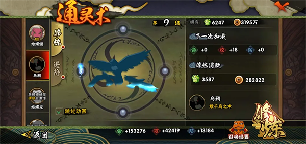 此外,在角色等级达到120级,并成功解锁通灵兽乌鸦后,还将开启通灵兽的进阶系统。消耗声望、培养石、铜币即可将通灵兽进阶,解锁对应天赋,提升战力。