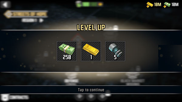 1、下载进入最后的希望3游戏,右侧的红色按钮是任务提示,右上角是金币和钞票显示。