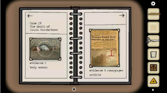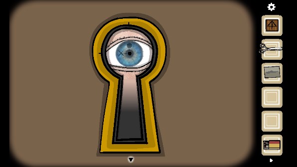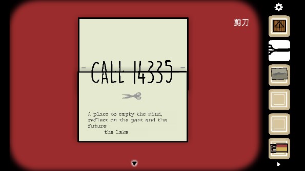 12、点击打字机输入英文后出现一张纸,用剪刀剪开,移动下面的纸使其叠加后获得提示「14335」,点击电话输入14335,获得提示让我们去看钥匙孔