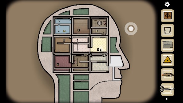 24、之后安排路线到达有水的房间,乘坐潜艇进入到红色的房间内,拉开房间内红色的帷幕,点击相框退出房间后将房间移到鼻腔处,接着进入房间,控制男主逃出