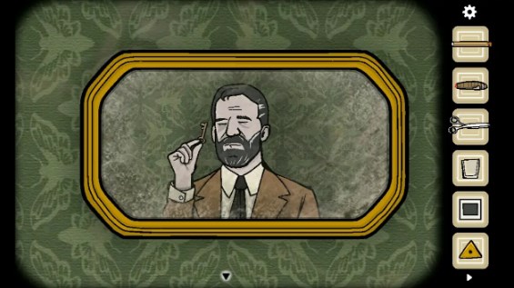 8、将时钟的时间拨到四点二十五,拿走暗格里面的「火柴」,来到镜子前,点击雪茄后用火柴点燃获得符号提示