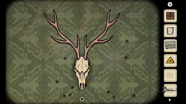 19、将眼球放入鹿的眼窝中后出现一群飞蛾,根据飞蛾的形状「鹿头、时钟、打字机、电视、门、镜子」移动到对应的位置,点击镜子,将飞蛾一个个点死之后进入男主的脑内世界