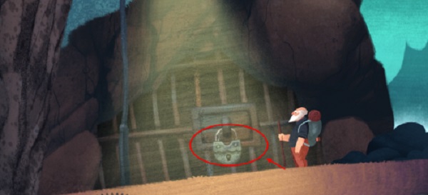 5、走到牢房门口场景会自动变大,然后我们点击牢房大门上的锁,触发老人回忆。
