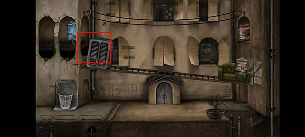 10、绳子断裂后会自动连接盆栽和老人,我们将盆栽推下,就可以引导老人回到房间
